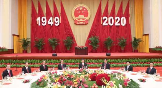 9月30日晚,国务院在人民大会堂举行国庆招待会,热烈庆祝中华人民共和国成立七十一周年。习近平、李克强、栗战书、汪洋、王沪宁、赵乐际、韩正、王岐山等党和国家领导人与近500位中外人士欢聚一堂,共庆共和国华诞。